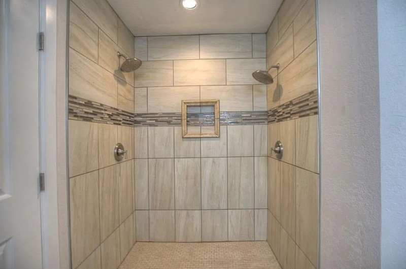The bathrooms are tastefully updated with granite surfaces and stylish tile finishes. The master bath offers a spa-like experience with dual shower heads and a walk-through closet for added convenience.