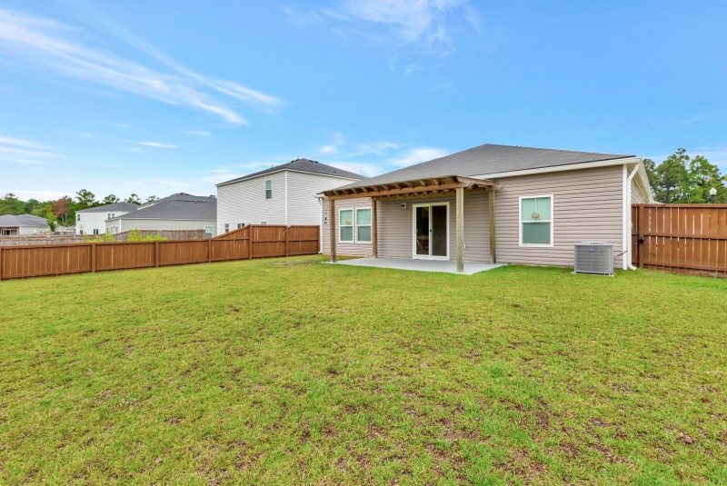 Step outside to relax on the patio, enjoy serene pond views, and take advantage of the pergola and enclosed fenced yard for added privacy.