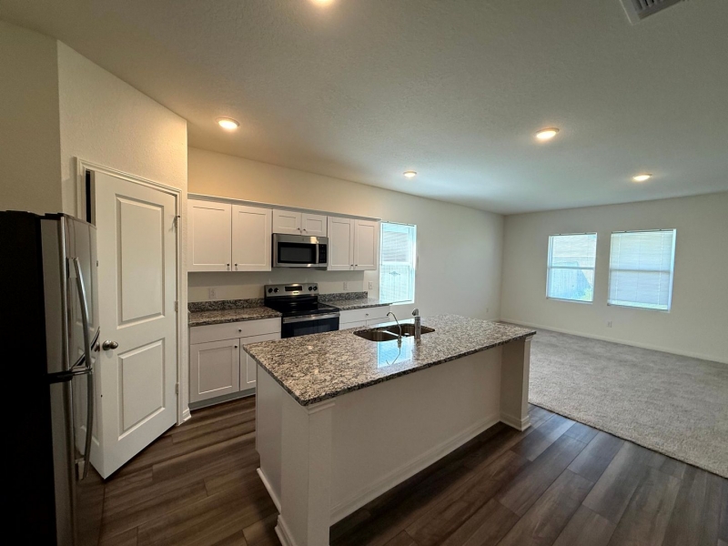 **Available Now! & 1/2 off first full months rent**This inviting 3 bedroom, 2 bath home combines comfort and modern style with wood-look vinyl plank flooring flowing seamlessly throughout most of the main living space with carpet in the living room and bedrooms. The open floor plan creates a bright and airy atmosphere, enhanced by abundant natural light pouring in through well-placed windows. The spacious living area connects effortlessly to the dining space and kitchen, making it perfect for both everyday living and entertaining. The thoughtfully designed layout features a separate master suite, offering privacy and a relaxing retreat with its own en-suite bathroom. Step outside to enjoy the large covered patio, perfect for outdoor dining, relaxing, or hosting gatherings year round. This home truly blends functionality, style, and comfort in every detail. Online application link is on our website, $75 non-refundable application charge for all applicants 18+ due at the time applying. Animals subject to restrictions & approval. Lease Administration Charge of $100 at lease execution.